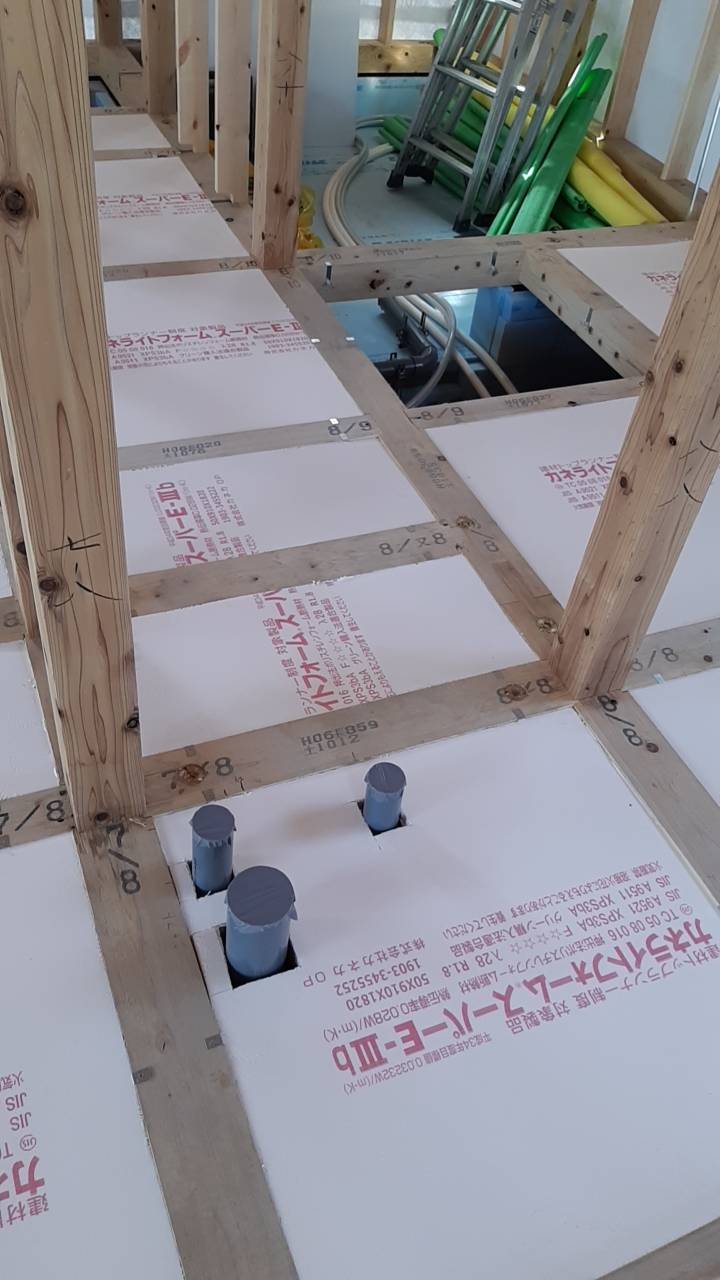 無垢材をふんだんに使った新築工事/施工事例/施工中/断熱工事/床