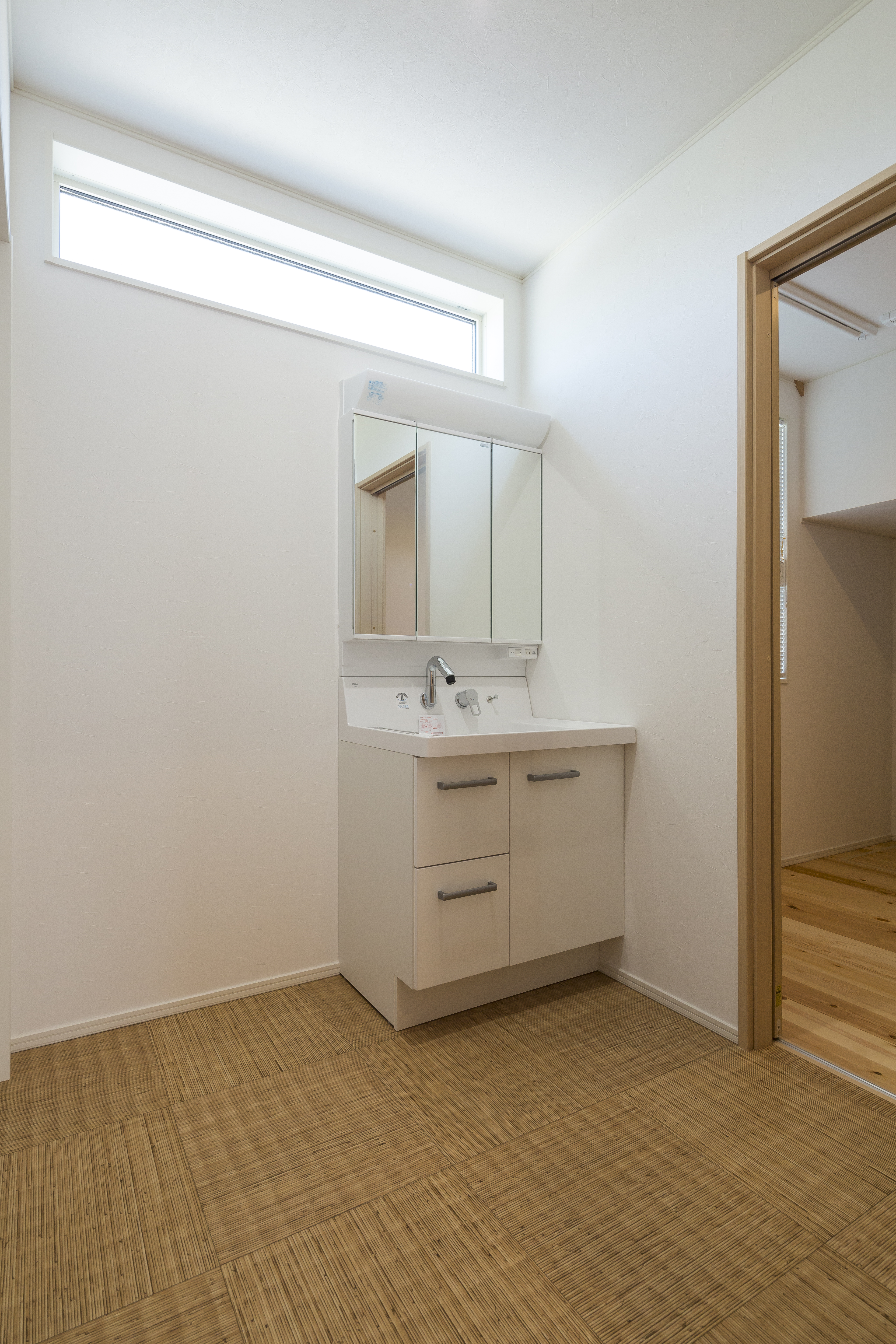 無垢材をふんだんに使った新築工事/施工事例/完成/洗面脱衣室/高窓/採光