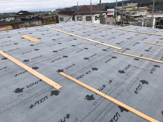 無垢材をふんだんに使った新築工事/施工事例/施工中/屋根/ルーフィング