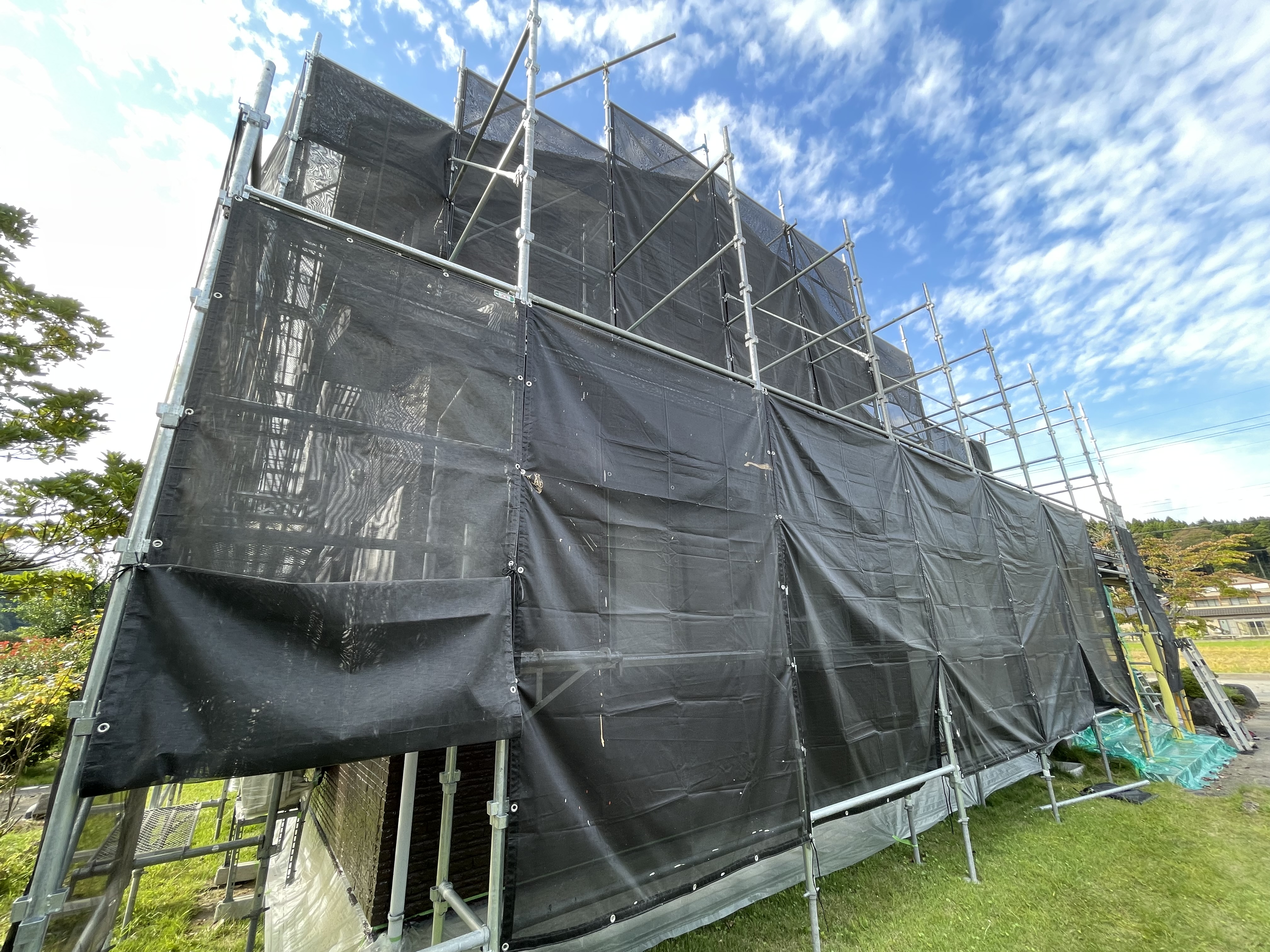 富山県氷見市の外壁塗装リフォームの施工事例/施工中/足場解体